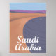 Afiche de viaje con sello de estilo vintage de Arabia Saudita. Dunas de arena árabes.