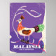 Poster de viajes malayo - Visita el afiche de viaje retro de Malasia.