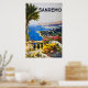 Este poster ofrece vistas al hermoso paisaje de San Remo. Sanremo o San Remo es una ciudad situada en la costa mediterránea de Liguria occidental en el noroeste de Italia. Afiche de San Remo Italia 1920. En este poster se ven la playa y el mar, con una variedad de flores en primer plano.
