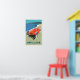 Cartel de viaje francés vintage para la Costa Azul con el coche de la carrera roja clásica como se puede ver en las calles de Mónaco