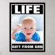 Esta es una hermosa imagen a favor de la vida de un bebé sonriente con ojos azules y la palabra VIDA y REGALO DE DIOS. Un borde blanco y negro rodea la imagen. Se pueden modificar todo el texto y las fuentes.