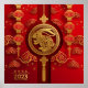 ¡2023 es el Año Nuevo Chino de Conejo! El diseño presenta conejo dorado sobre rojo con linternas y nubes.