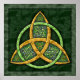 Un diseño original del Celtic Trinity Knot, en verde y dorado, decorado con más nudos celtas y enmarcado en un campo verde.