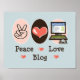 Un símbolo de paz, corazón, teclado, computadora, ratón y mousepad en tonos rosa, marrón oscuro, azul y verde al bloguear en camisetas, ropa, papelería y más mercaderías que muestran tu pasión por escribir en línea. Un lindo regalo para un blogger, o autor en línea que ama compartir sus puntos de vista y opiniones en la web.