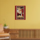 Maravilloso poster de arte con una boxeadora, collie y bulldog con una bella dama con un vestido rojo mirando a los perros.