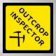 Inspector de brotes - poster de humor geológico - diseño de estilo de señalización de advertencia de diamante amarillo con martillos de roca cruzados.