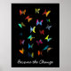 Mariposas ricas en vivos colores dibujados a mano con acuarela. Colores lindos del arcoiris. Conviértete en la cita inspiradora del cambio. Hermosas mariposas vibrantes.