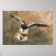 Vista frontal de un pato que se prepara para aterrizar en el agua.