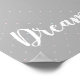 Poster con motivos de puntos rosa pastel y azul sobre fondo gris.