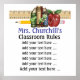 Esto ha sido un gran éxito con mis amigos y clientes de profesores junto con mis otros posters de profesores, así que lo estoy ofreciendo de varias maneras diferentes para el nuevo año escolar. Simplemente teclee sobre cada línea para agregar sus reglas. Eliminar / disminuir el tamaño de parte del texto. Variar los colores por regla. Diviértete con eso. ¡Eso es la mitad de la diversión de Zazzle! Si su escuela está interesada en comprar esto como reglas para la escuela, por favor informe a sus administradores que Zazzle ofrece generosos descuentos en cantidad, y muchos de mis clientes están encantados de usarlo a diario. Muchas gracias, y por favor pasa mi dirección de tienda a los amigos... Gracias por estar aquí, y por favor visita a menudo, Sharon Rhea Ford (NBCT - Art) www.zazzle.com/sharonrhea* (Revisa mi sección de profesores de escuela para más y productos similares también!)