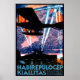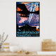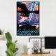 Cartel vintage de C. 1920 que promueve una exposición de aviación realizada en Budapest, Hungría. Imagen excepcional con naves de guerra, un Zeppelin, barco volador y aviones más pequeños.