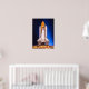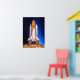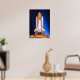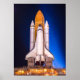 El Poster del transbordador espacial Atlantis cuenta con una fotografía del transbordador espacial Atlantis, adherido a su tanque de combustible externo de naranja brillante y a sus dos impulsores de cohetes sólidos en la plataforma 39A de lanzamiento en el Centro Espacial Kennedy de la NASA en Florida De noche.