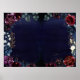 Un conjunto de peonías rojas, violetas y azul marino profundas adornadas con brillantes contornos de oro contra un oscuro y rico lienzo acuático azul marino con trampas de oro marca el tono para esta espléndida invitación a la boda. Un guión animado en oro anuncia tus detalles e invita a tus invitados a tu boda.