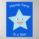 Este poster presenta una imagen gráfica de una estrella azul de cinco puntas con ojos enormes y una gran sonrisa. Hay un texto de personalizable que le permite personalizar este diseño con el nombre del destinatario y un mensaje especial de su elección.