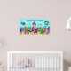 Hermosa sirena roja y rosa haitiana que dibujé a mano con corales de colores brillantes, peces, tortuga, cangrejo y otra divertida vida marina. Un poster de escena tropical bonito para el cumpleaños de su hija. Sólo hay que añadir su nombre al área personalizada.