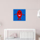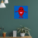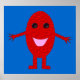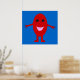 Un personalizado de una uva roja sonriente con ojos negros brillantes y una boca rosa parados en un fondo azul con los brazos abiertos. Este es un poster colorido y vibrante que debería poner una sonrisa en su cara.