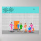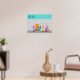 Usted es invitado al evento social del año con este diseño poster Fiesta de la Palm Springs Stewardess. Únete a estas tres veteranas aeromozas de las aerolíneas rivales mientras se registran en su kitschy hotel en bloques de brisa de los años 60. Uno de los fabulosos y coloridos botones con un retro uniforme rosado caliente sostiene la puerta del naranja mientras que el otro lucha con el equipaje de las mujeres. Las palmeras verde azuladas se desprenden de un cielo increíblemente turquesa mientras un barco transbordador vuela por encima. Este diseño te hará decir: "¡En tu marca, jet set, ve!"