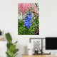 Hermoso poster de impresión de flores delfiníneas azules