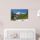 El cono volcánico del Monte Baker, cubierto de nieve, se eleva en el cielo azul claro de un brillante día de verano en el noroeste del Pacífico. Debajo de las montañas, un pequeño lago alpino asoma desde detrás de un bosque de árboles verdes. El Monte Baker, también conocido como Kulshan o Koma Kulshan, es un volcán prominente en las montañas de la cascada norte del estado de Washington. Trae este paisaje alpino de árboles y nieve a tu casa con este poster. Esta vista panorámica de la selva noroccidental también se ve muy bien en posters más pequeños. ¡Disfruta del paisaje!