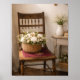 A soft French country still life featuring a vintage wooden chair with a woven basket of delicate blush and cream flowers. This peaceful cottage A charming French country still life featuring a vintage wooden chair and a woven basket filled with delicate cottage flowers. Soft botanicals and rustic textures create a peaceful countryside scene inspired by French cottage interiors. Perfect wall art for kitchens, breakfast nooks, coffee bars, and cozy cottage homes. This botanical still life poster brings timeless French country charm and gentle floral beauty to your space.