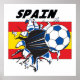 Posters de fútbol de España, impresiones y mercadería para aficionados al fútbol de España. Regalos de fútbol para hinchas de fútbol y futbolistas. Foto de una pelota de fútbol reventando a través de la bandera española. Productos y equipo de fútbol.