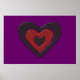 Este poster presenta una hermosa imagen digital de un corazón gótico negro y rojo con bordes andrajosos que brillan con una luz etérea y parecen estar derritiéndose. El fondo es morado.