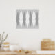 Este moderno Poster de estilo grisáceo de mediados del siglo XX presenta un fondo gris de paloma y un patrón de diamantes de color gris oscuro, translúcidos y modestos sobre diamantes blancos más grandes y vintage con especkles de edad espacial de color gris. Este estilo minimalista de inspiración y deconstrucción es un retroceso simplista de la era atómica más grande que la vida que dominó el paisaje decorativo de los años 50 y 60. Este diseño kitsch recuerda a todo, desde las señales de la bolera de Palm Springs retro hasta los programas de televisión clásicos, pasando por las bandejas de televisión que usaste en la casa de tu abuela.