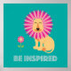 Poster motivacional de un león con una flor inspirada en una flor para recordarnos que a veces sólo necesitamos mirar alrededor de nuestro entorno para inspirarnos. Este poster está diseñado con amor por Eggplant y Purple.