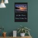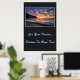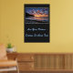 Poster mostrado con una foto impresa de una hermosa puesta de sol en la playa. El fondo poster es un color de carbón profundo. Personalizar este artículo o compra tal cual. Imagen de stock