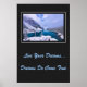 Poster mostrado con una foto impresa de una hermosa escena del lago de montaña invernal. El fondo poster es un color de carbón profundo. Personalizar este artículo o compra tal cual. Imagen de stock freepik.com