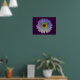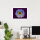 Este poster bonito muestra una fotografía de una flor de marigold que ha sido manipulada para crear una hermosa flor con una mezcla de colores del arcoiris. La flor tiene un fondo violeta oscuro y dramático. El diseño se completa con un borde violeta de bonito.