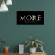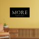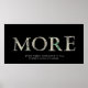 El poster "Más" muestra las letras "M" "O" "R" "E" que se describen como si alguien retirara las cartas de un billete de un dólar. También hay una leyenda debajo que dice: "Incluso cuando lo tienes todo. Siempre hay más". La frase "Más" se usó en una reciente película taquillera "Wallstreet: el dinero nunca duerme", protagonizada por Shia Labeouf. Mientras el personaje de Shia Labeouf le pregunta a un empresario muy rico con qué número está satisfecho, responde con una palabra: "MÁS". Este poster es genial para los jóvenes emprendedores, o cualquiera que ame el dinero.
