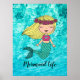 Una adorable personalizado diseñó una sirena en un mar de azul.
