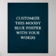 Elevar cualquier espacio con este poster/cartel de personalizable, con un fondo azul oscuro diseñado por Toni. Este fondo proviene de una pintura digital original, por lo que tiene más profundidad e interés que sólo un fondo de color claro. El contexto único de la cita o información de su personalizado hace que su texto personalizado se destaque maravillosamente. Ya sea que quieras mostrar una cita favorita, verso biblia, detalles de eventos o un dicho significativo, esta impresión de personalizable te permite traer sus palabras a la vida de una manera audaz y artística. Una combinación perfecta de tonalidad y singularidad, este diseño transforma cualquier mensaje en una impresionante pieza central visual. Haga clic en "Personalizar este diseño" para añadir su presupuesto, y/o haga clic en "Editar usando herramienta de diseño" para cambiar el texto y el color del texto. El fondo seguirá igual. Las fotos de las camionetas mostrarán ejemplos de este poster enmarcado/apareado. Recibirá sólo la impresión o la descarga digital. Visita mi tienda para ver antecedentes más únicos para posters personalizados. ¡Estos diseños sólo se encuentran en mi tienda! ¡Gracias por su interés, aprecio su negocio!