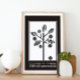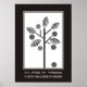 Árbol estilizado blanco negro sobre fondo blanco poster de impresión motivacional, mostrando un árbol con hojas y fruta en un estilo mínimo blanco y negro. El teaxt dice "CLIMB A TREE, TE ACERCA MÁS AL CIELO".