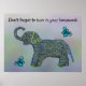 Ilustracion gráfico de un diseño asiático de elefantes y mariposa. Personalizar este poster con un recordatorio de "No olviden" para sus estudiantes.