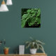 Un proverbio japonés, expresando esperanza y paciencia, "Si esperas, llegará el néctar - como si el tiempo fuera justo". Esto está envuelto en verde pálido sobre una foto de las delicadas hojas de un Fern de cabello de soltera, decorado con gotitas de lluvia otoñal.