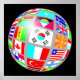 Globo de banderas del mundo sobre fondo negro. Poster de personalizable completo, incluyendo color de fondo y borde. Disponible en una variedad de tamaños.