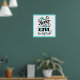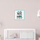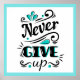 This poster features a white background with aqua blue accents and borders with black text. Text reads " never give up" with filigrees. Customize this item or buy as designed.
