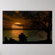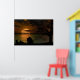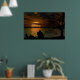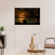 Con una vista impresionante de un espléndido oasis insular con vistas al mar Majestuoso. Se puede ver la silueta de algunas personas alrededor de un incendio y el reflejo del océano del hermoso sol naranja. Esta es una hermosa foto de este poster