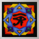 Este es un cuadro de una mandala con el Ojo de Horus en el centro. El Ojo de Horus es un antiguo símbolo egipcio de protección, poder real y buena salud.