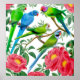 Pintura de loros coloridos con loros de ciruela, derbyan, monje y paracaídas de cuello de timbre indio por la artista aviar Carolyn McFann de Two Purring Cats Studio.