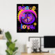 Promueve la paz y el amor y disfruta de los colores brillantes y calientes al mismo tiempo con nuestro poster de Paz y Amor con símbolo de paz, flores y muchos colores brillantes en un fondo negro!
