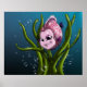 Un simfisodon lindo discute los nadadores a través de algunas hierbas marinas con burbujas alrededor de ella. Visto en un fondo submarino con alguna luz que llega a la derecha. El tamaño del poster es de 20,87" x 16,77".