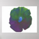 Este poster grueso presenta una fotografía de una flor de petunia que ha sido manipulada para hacer azul el centro de la flor. El resto de la flor tiene tonos morados, verdes y azules, lo que le da la impresión de una flor de arcoiris gruesa.