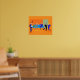 ¡Este Poster Fiesta Retro Gay es naranja, cursi y absolutamente fabuloso! El estilo de los años 60 presenta un diseño de arte minimalista con paredes de ladrillo naranja y turquesa, Palm Springs, barrera de bloques de brisa. El moderno sofá de mitad de siglo, de perfil bajo, azul, tufado, con una almohada aguacate de tiro verde, naranja, alfombra de cuero de cebra y la iluminación atómica y de cono negro hacen de este sofisticado fiesta de cócteles el telón de fondo perfecto. Los cinco caballeros, todos vestidos con trajes impecablemente hechos a la medida, están teniendo un tiempo gay bailando a discos de vinilo, y bebiendo sus cócteles rosas en clásicos vasos de martini. Uno de los hombres está llevando incluso una torta azul de huevo de robin de dos niveles. ¡Ahora es un fiesta!