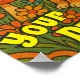 Esta imagen psicodélica retro de un lindo gatito rodeado de hongos coloridos y flores mirando a una mariposa tiene las vibrantes vibraciones de los años 60 y 70. Puedes personalizar el motivacional texto "seguir tus sueños".