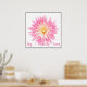 Poster mostrado con una foto de una flor de dahlia rosa bonito. Texto de "Alegría paz amor" en la parte inferior. Personalizar este artículo o compra tal cual. Imagen de stock www.freepik.com