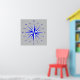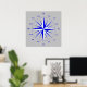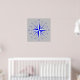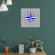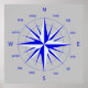Poster con la imagen de un rosa de brújula en azul y blanco sobre un fondo gris.