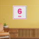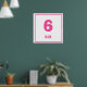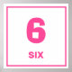 Pink número seis sobre fondo blanco con borde rosa. Ayuda a tu pequeño a aprender los números con este diseño número seis.